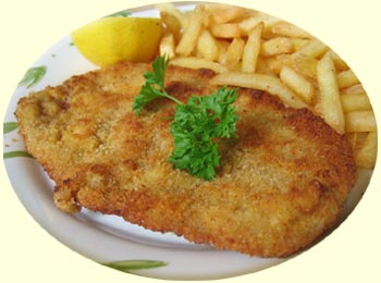 Dieser Weg ist in Speiselokalen und auch etwas besseren Restaurants weiter verbreitet, als Sie vielleicht vermuten würden. Der Vorteil : Das Schnitzel schmeckt immer gleich. Der Nachteil: Das Schnitzel schmeckt immer gleich (gleich langweilig). Bei uns wird jedes Schnitzel von Hand geschnitten, gewürzt, geklopft, paniert und in die Pfanne gelegt. Man schmeckt den Unterschied. Diese Schnitzel bieten wir täglich in 3 Größen in unserer normalen Speisekarte an, wahlweise mit 2 verschiedenen Soßen und unterschiedlichen Beilagen. Schnitzeltag